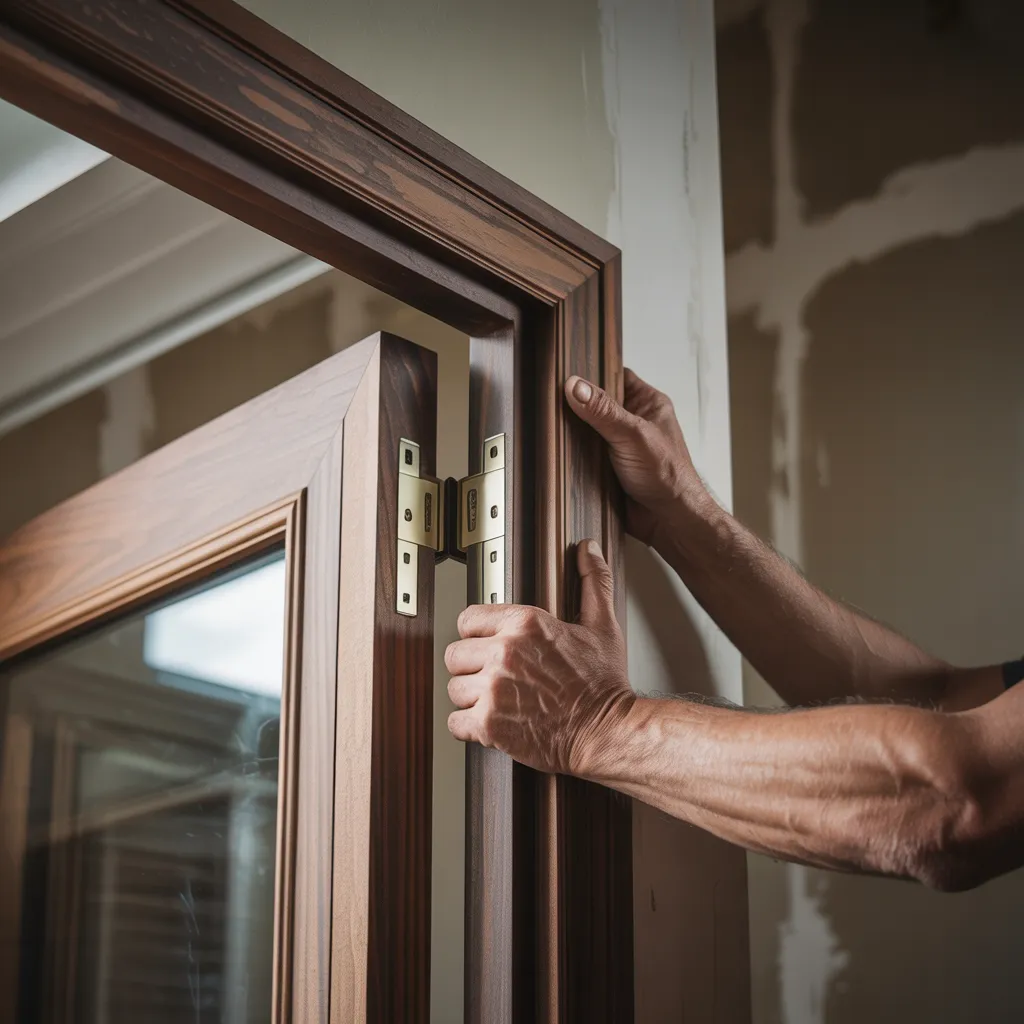 After that, the existing door is carefully removed, making sure not to compromise the frame. The new door is positioned within the frame, and modifications are made for a tight fit. Once positioned correctly, the hinges are fastened, and the door important information is mounted.